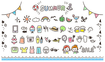 夏のアイコン 手描き セットのイラスト素材